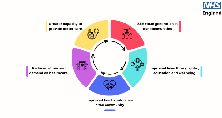We are the social value team, an NHS team who lead the Social, Environmental, and Economic (SEE) value creation work on key NHS projects. The team is responsible for developing and implementing the SEE Value strategy. The strategy outlines how the NHS can reduce health inequalities and enhance health and well-being through its activities, ultimately building the capacity to make value-based decisions. With a vast array of experience across healthcare, infrastructure, social value, skills & employment, environmental, social, and economic sustainability, the team is well-equipped to drive impactful change that works towards broader goals of creating lasting, positive outcomes for communities.