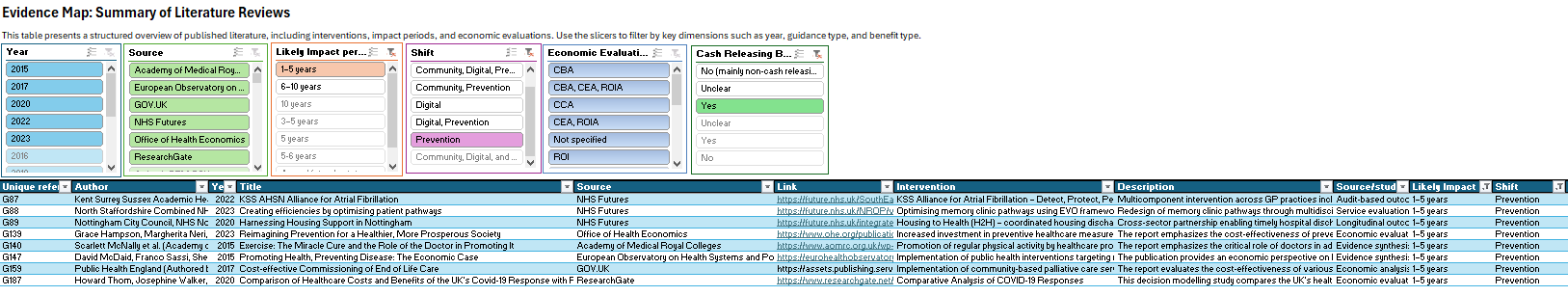 The Health Economics Unit (HEU) has been asked to undertake a literature review looking at
